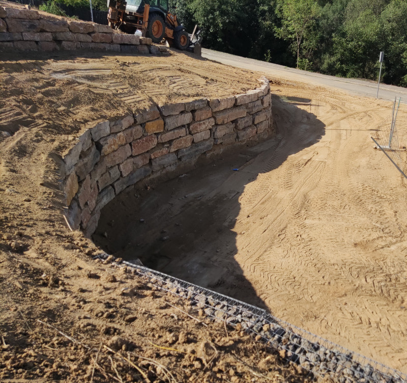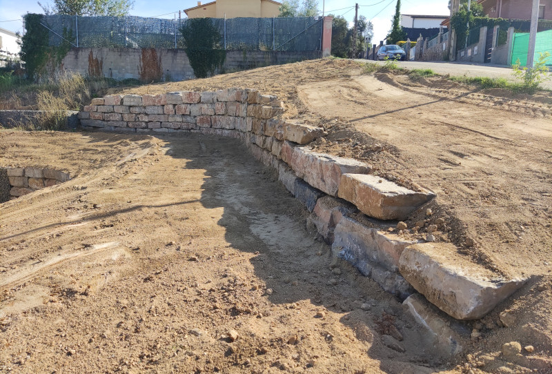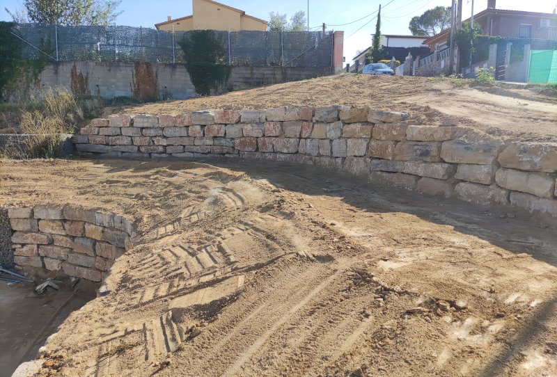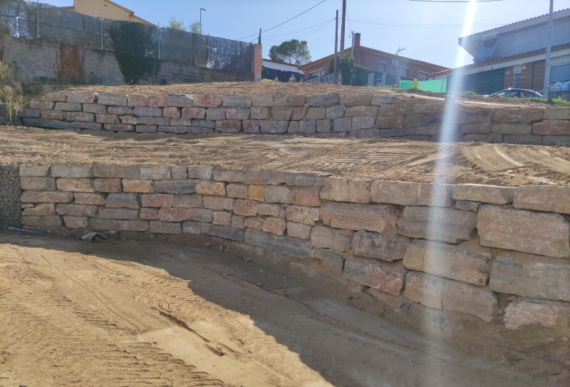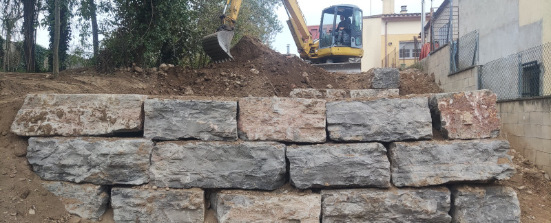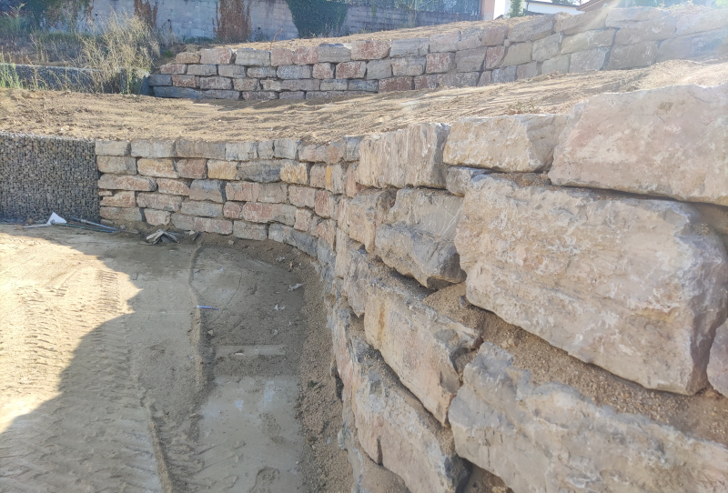 Muro de contención con rocallas
